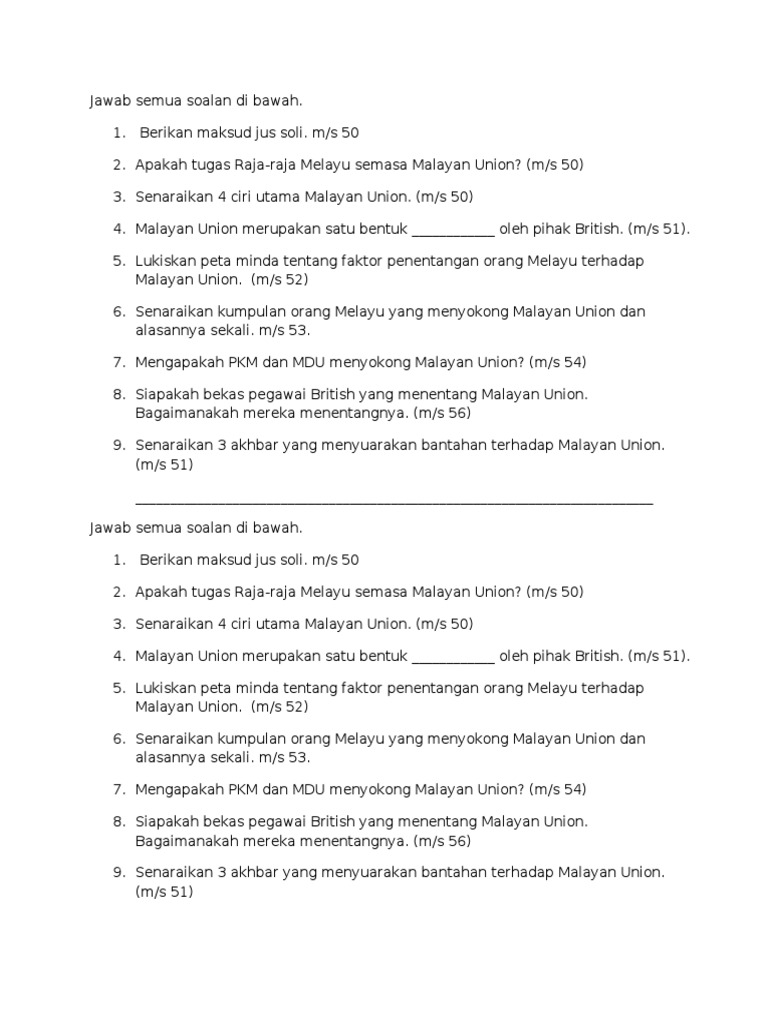 Jawab Semua Soalan Di Bawah Malayan Union Pdf